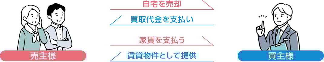 リースバックとは、第三者へ不動産を一旦売却し、賃料を払い賃貸という形で継続して住み続ける方法です。将来的には買い戻すことが可能です。